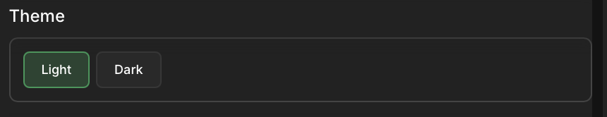 However, this toggle does not affect your live widget. The final theme applied is always controlled by you — via the set\_theme() method on your platform.